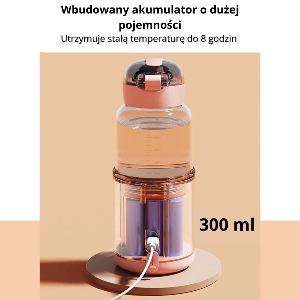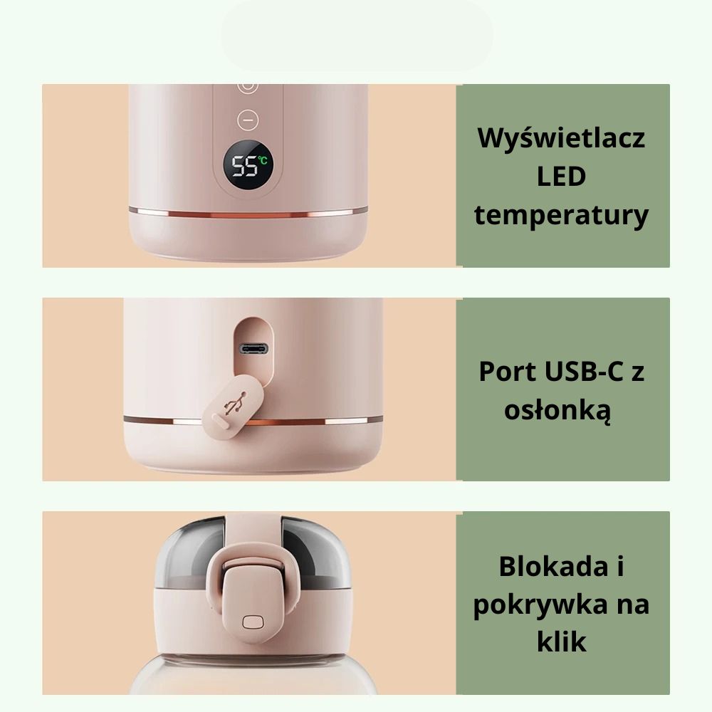 Wbudowana funkcja podtrzymywania ciepła sprawia, że butelka jest zawsze gotowa – zarówno w nocy, jak i podczas spacerów.